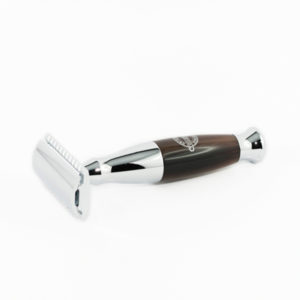 Rasoio Di Sicurezza, Col. Ebano, Cromato, con 1 Pacchetto Di Lame Feather Da 5 Pz.